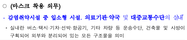 마스크 착용 의무 유지 장소