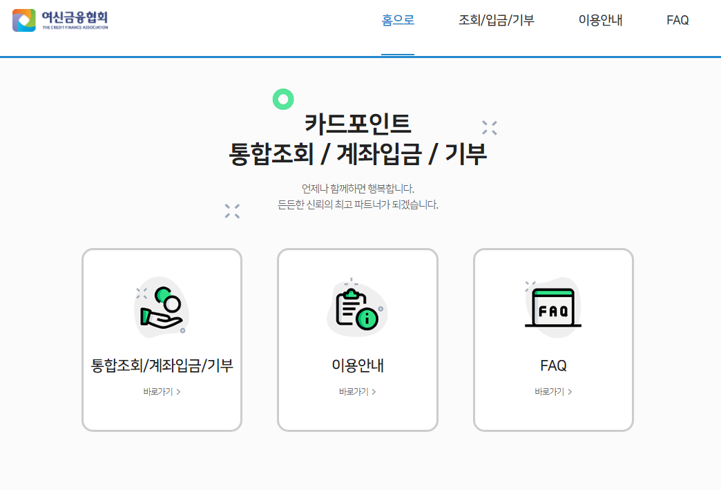 - 카드포인트 통합조회 / 계좌입금 / 기부 이용안내 바로가기
